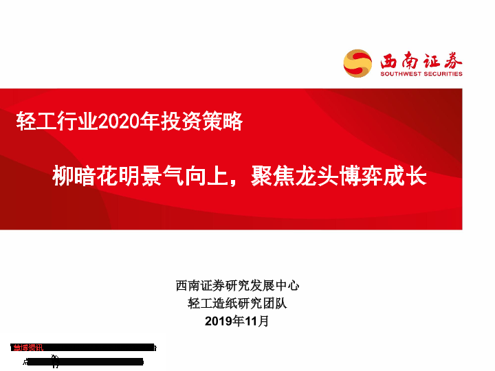 【西南证券】【20191127】轻工行业2020年投资策略:柳暗花明景气向上,聚焦龙头博弈成长-55页
