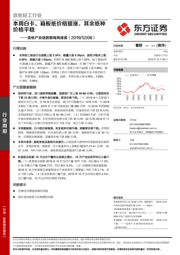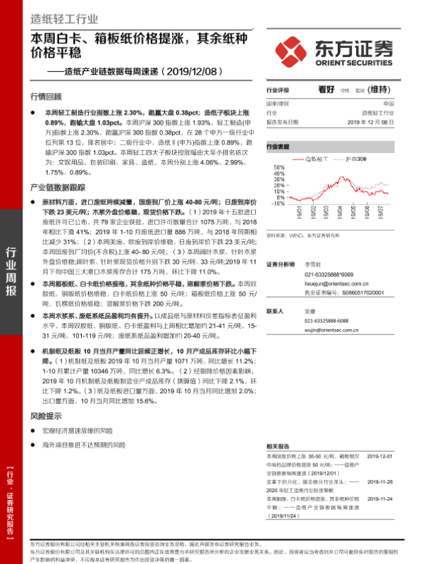 【东方证券】【20191208】造纸产业链数据每周速递:本周白卡、箱板纸价格提涨,其余纸种价格平稳-14页