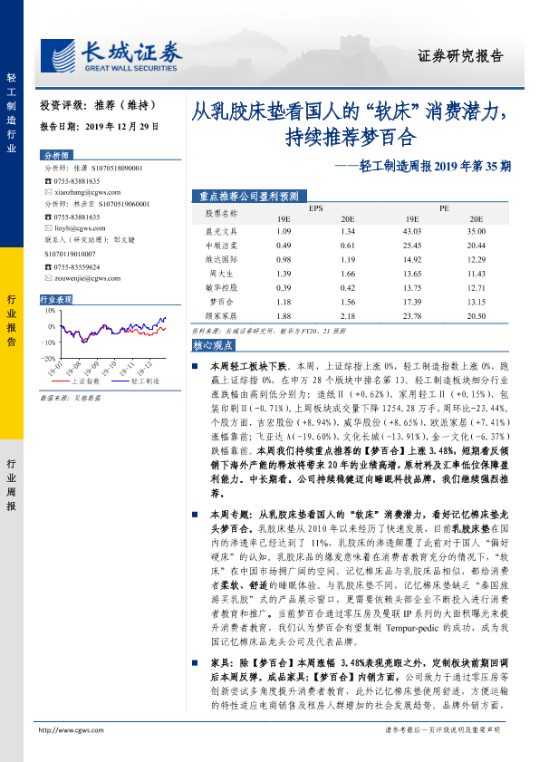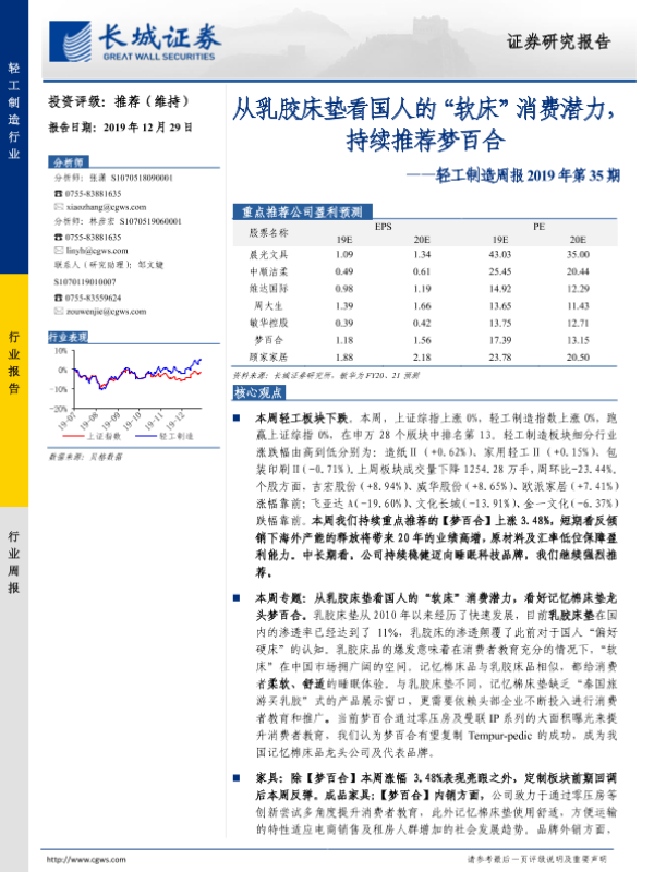 【长城证券】【20191229】20191229-长城证券-轻工制造周报2019年第35期:从乳胶床垫看国人的“软床”消费潜力,持续推荐梦百合-38页