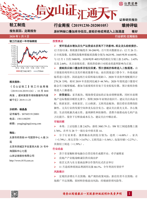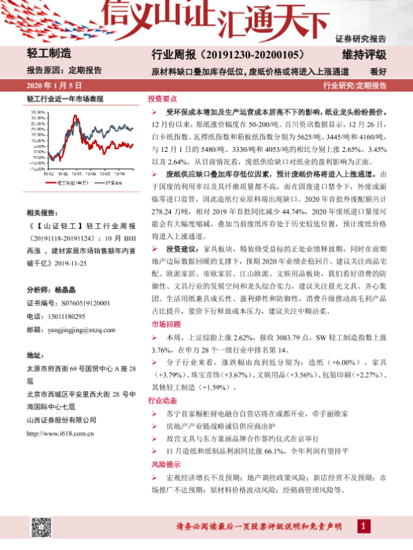【山西证券】【20200105】轻工制造行业周报:原材料缺口叠加库存低位,废纸价格或将进入上涨通道-13页