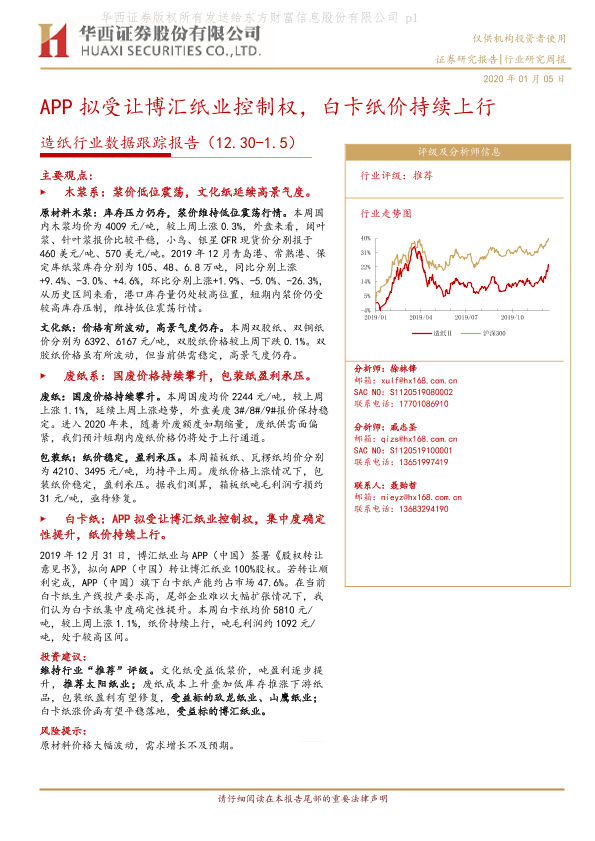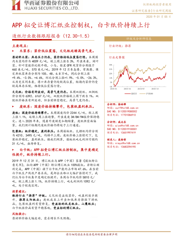 【华西证券】【20200105】APP拟受让博汇纸业控制权,白卡纸价持续上行-9页