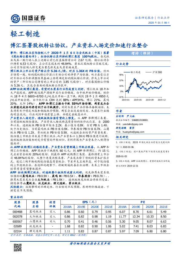 【国盛证券】【20200106】轻工制造:博汇签署股权转让协议,产业资本入场定价加速行业整合-2页