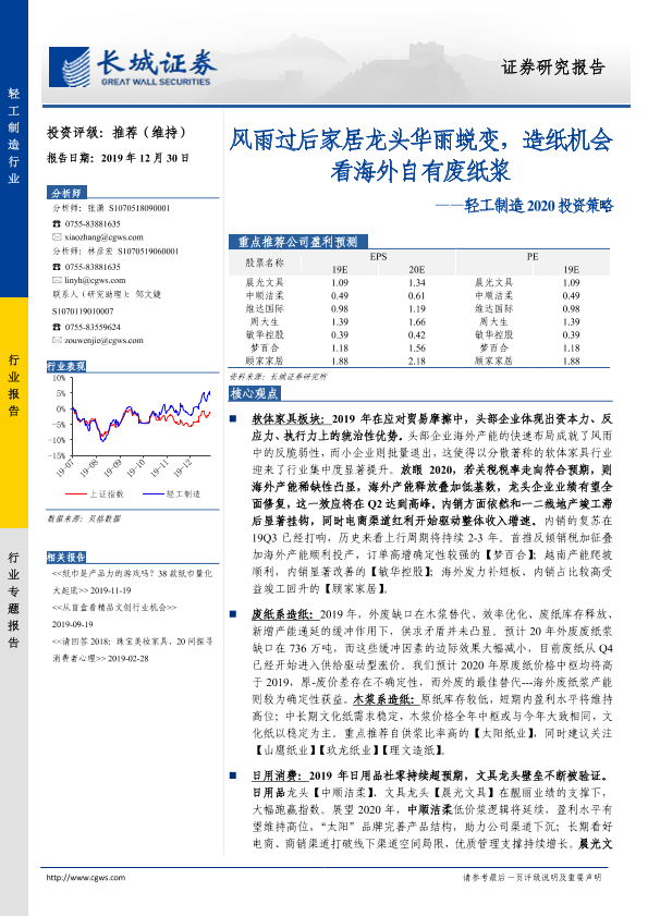 【长城证券】【20191230】20191230-长城证券-轻工制造2020投资策略:风雨过后家居龙头华丽蜕变,造纸机会看海外自有废纸浆-54页