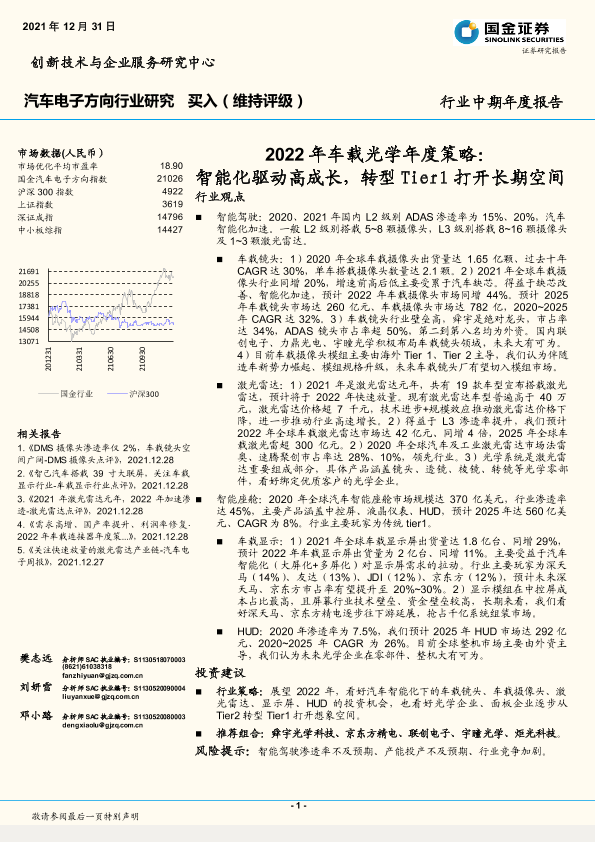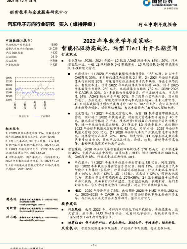 【国金证券】【20211231】汽车电子方向行业中期年度报告:2022年车载光学年度策略,智能化驱动高成长,转型Tier1打开长期空间-22页
