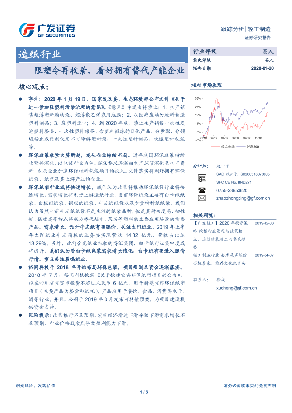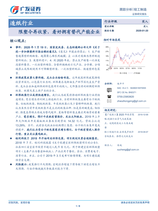 【广发证券】【20200120】造纸行业:限塑令再收紧,看好拥有替代产能企业-6页