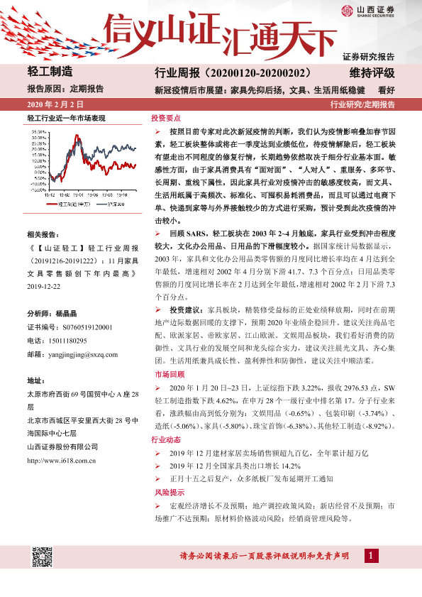 【山西证券】【20200202】20200202-山西证券-轻工制造行业周报:新冠疫情后市展望:家具先抑后扬,文具、生活用纸稳健-13页