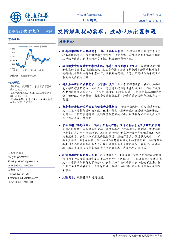 【海通证券】【20200203】20200203-海通证券-造纸轻工行业周报:疫情短期扰动需求,波动带来配置机遇-6页