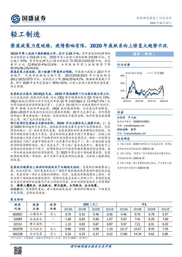 【国盛证券】【20200207】轻工制造:禁废政策力度延续,疫情影响有限,2020年废纸系向上修复大趋势不改-2页