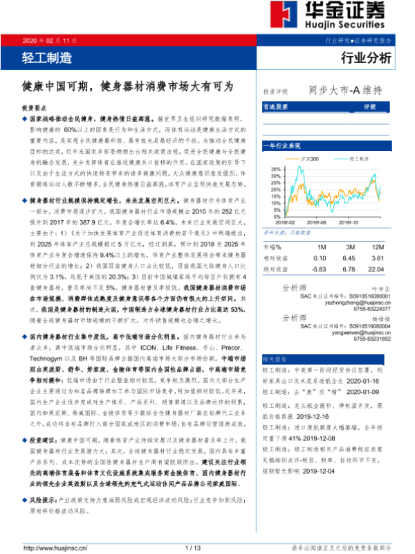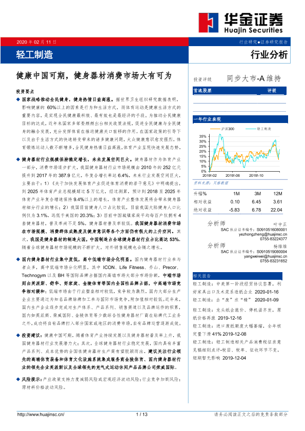 【华金证券】【20200211】轻工制造:健康中国可期,健身器材消费市场大有可为-13页