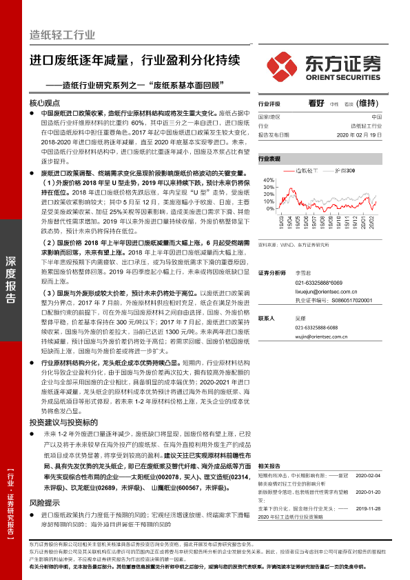 【东方证券】【20200219】造纸行业研究系列之一“废纸系基本面回顾”:进口废纸逐年减量,行业盈利分化持续-20页