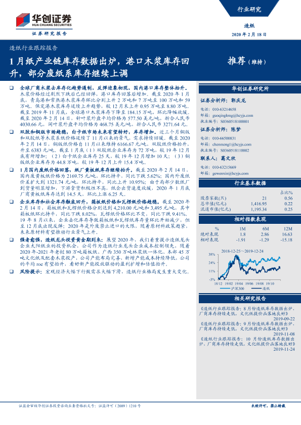 【华创证券】【20200218】20200218-华创证券-造纸行业跟踪报告:1月纸产业链库存数据出炉,港口木浆库存回升,部分废纸系库存继续上调-11页