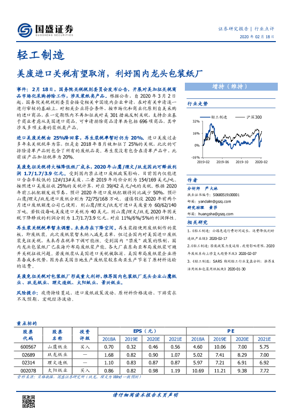 【国盛证券】【20200218】轻工制造:美废进口关税有望取消,利好国内龙头包装纸厂-2页
