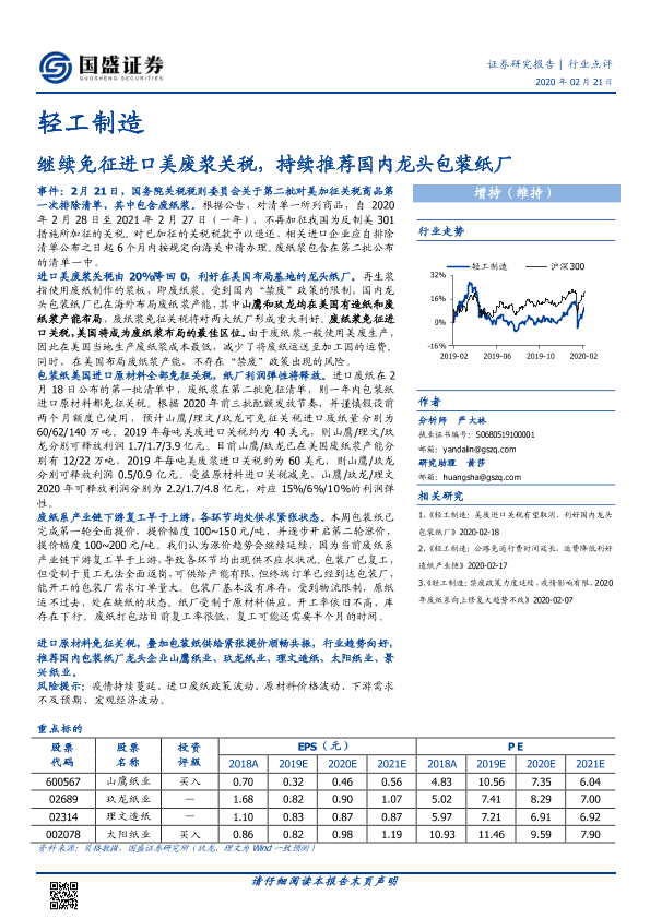 【国盛证券】【20200221】轻工制造:继续免征进口美废浆关税,持续推荐国内龙头包装纸厂-2页