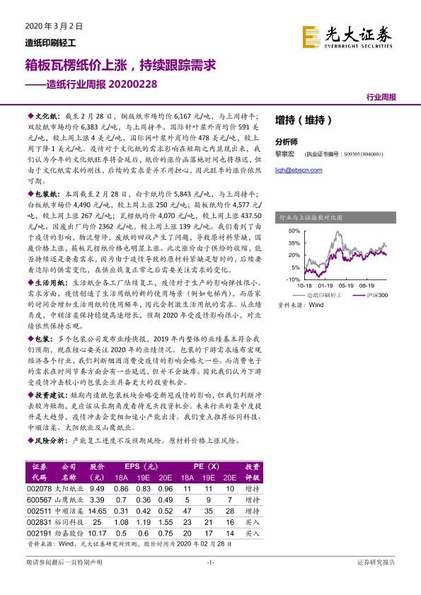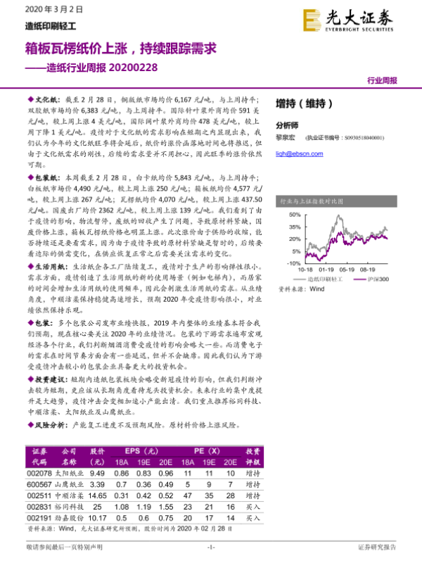 【光大证券】【20200302】20200302-光大证券-造纸行业周报:箱板瓦楞纸价上涨,持续跟踪需求-12页