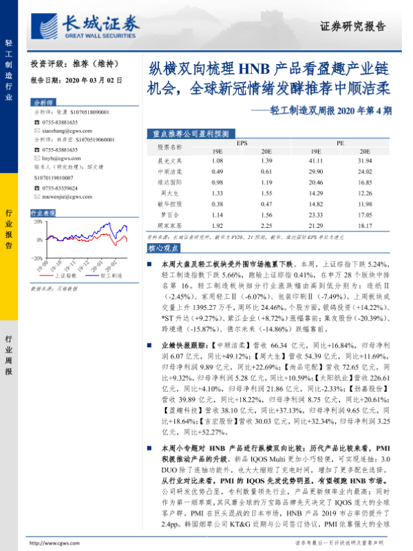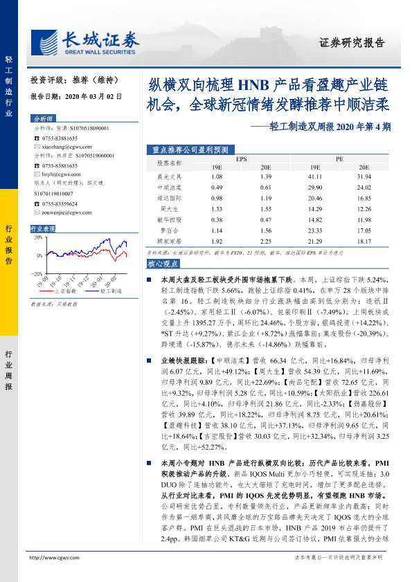 【长城证券】【20200302】轻工制造双周报2020年第4期:纵横双向梳理HNB产品看盈趣产业链机会,全球新冠情绪发酵推荐中顺洁柔-41页