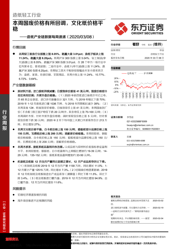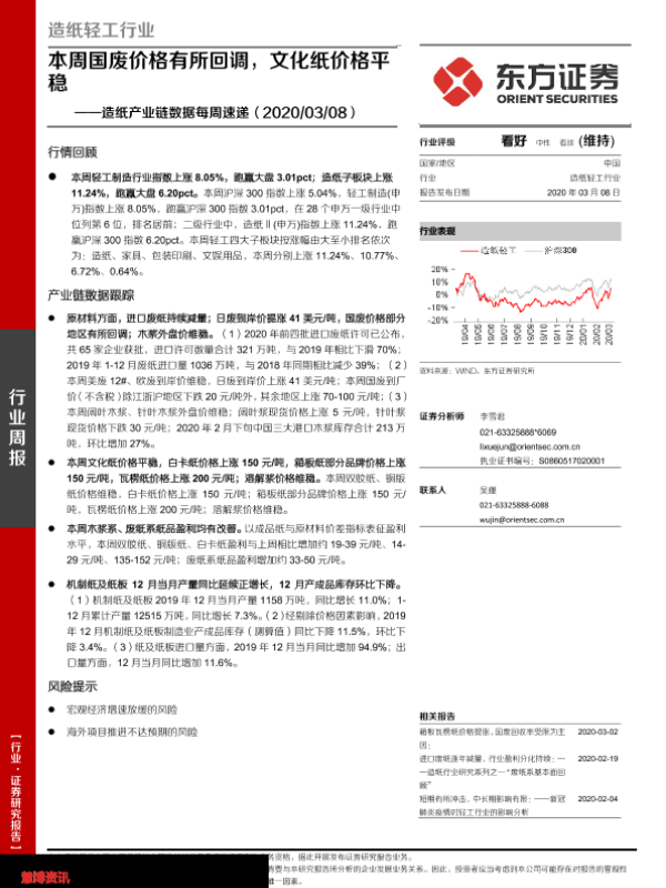 【东方证券】【20200308】20200308-东方证券-造纸产业链数据每周速递:本周国废价格有所回调,文化纸价格平稳-15页
