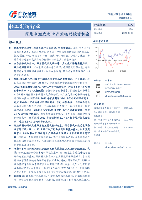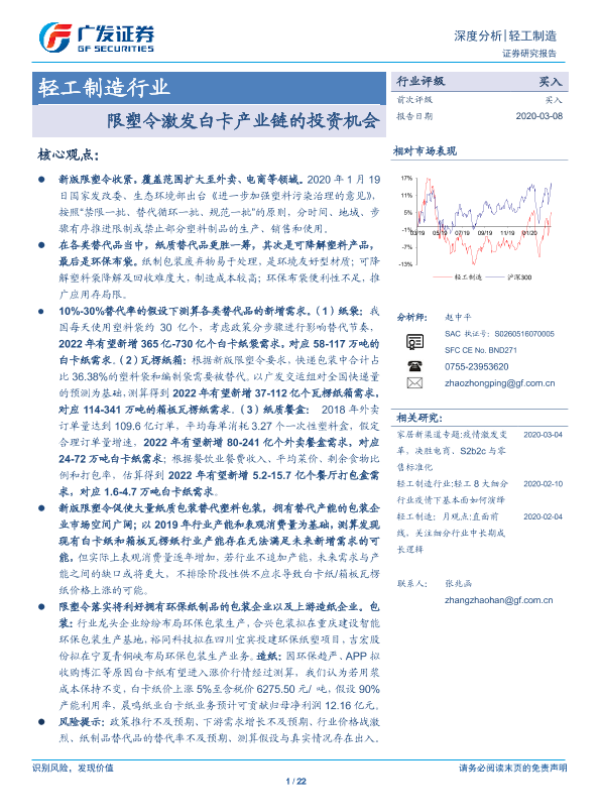 【广发证券】【20200308】轻工制造行业深度分析:限塑令激发白卡产业链的投资机会-22页