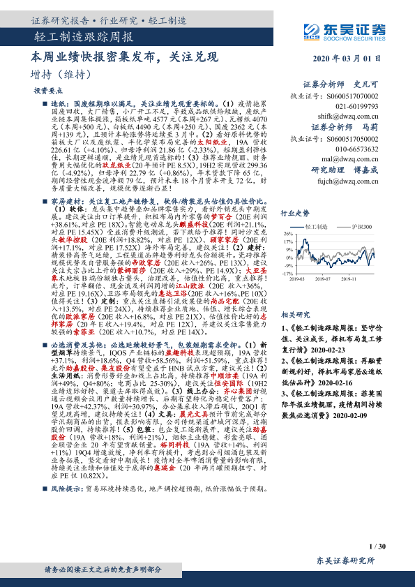 【东吴证券】【20200301】20200301-东吴证券-轻工制造跟踪周报:本周业绩快报密集发布,关注兑现-30页