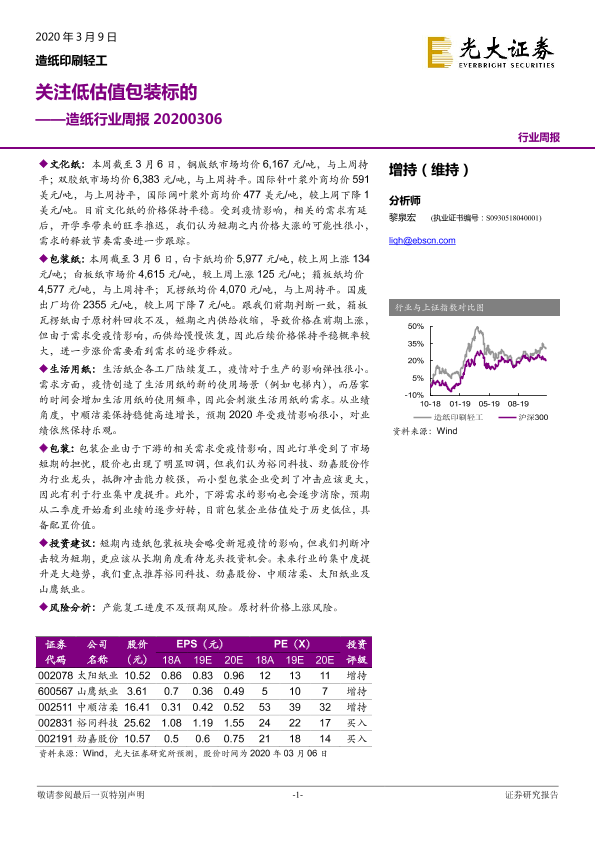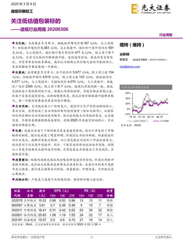 【光大证券】【20200309】造纸行业周报:关注低估值包装标的-12页