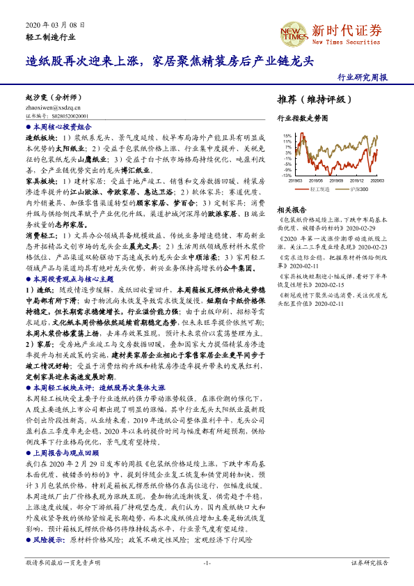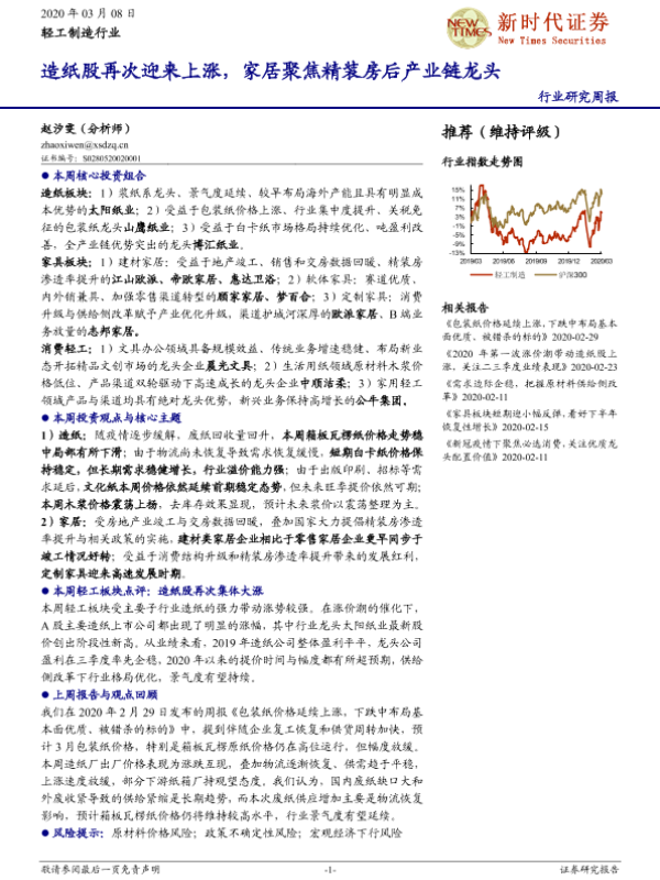 【新时代证券】【20200308】轻工制造行业:造纸股再次迎来上涨,家居聚焦精装房后产业链龙头-22页