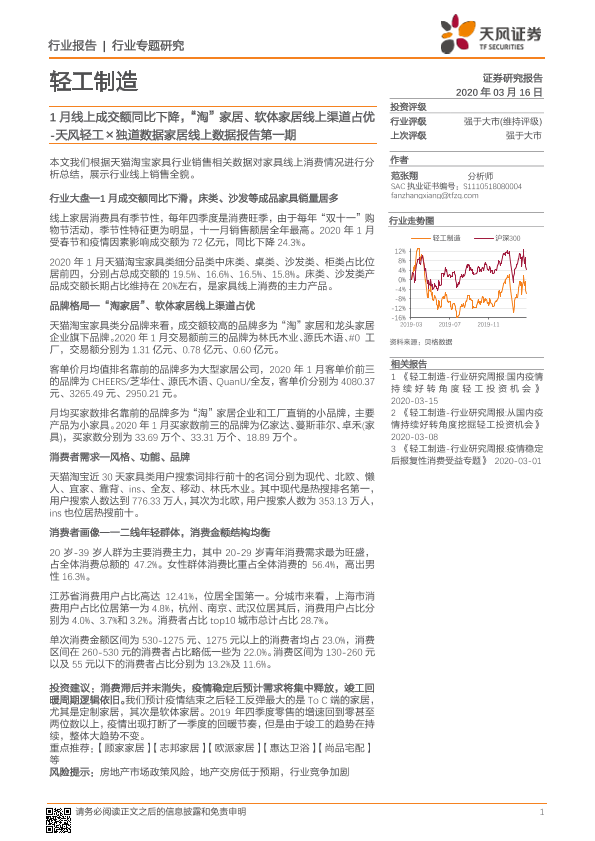 【天风证券】【20200316】1月线上成交额同比下降,“淘”家居、软体家居线上渠道占优-11页