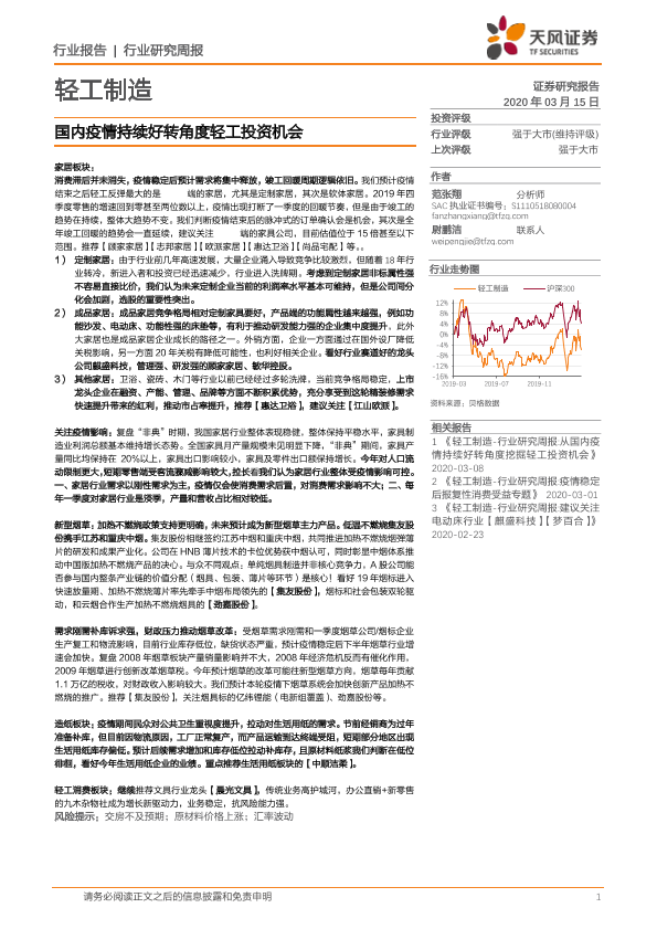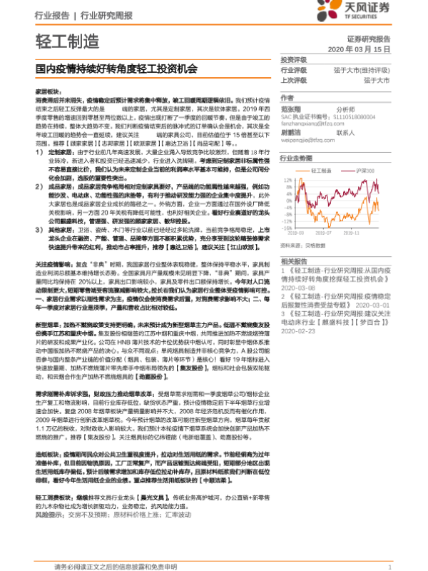 【天风证券】【20200315】20200315-天风证券-轻工制造行业研究周报:国内疫情持续好转角度轻工投资机会-23页