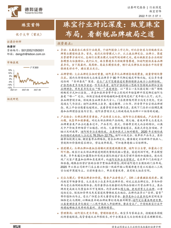 【德邦证券】【20220107】珠宝行业对比深度:纵览珠宝布局,看新锐品牌破局之道-25页