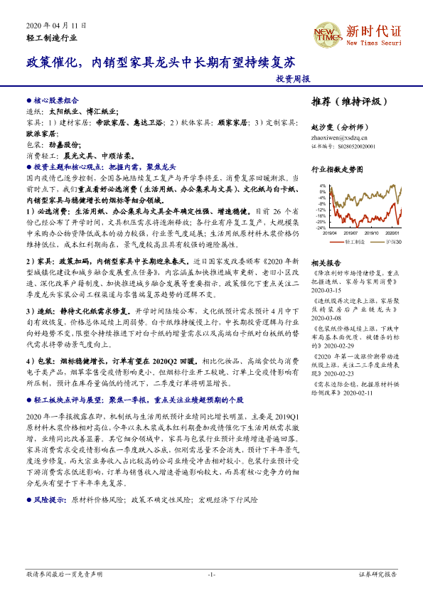 【新时代证券】【20200411】20200411-新时代证券-轻工制造行业投资周报:政策催化,内销型家具龙头中长期有望持续复苏-23页