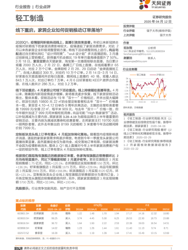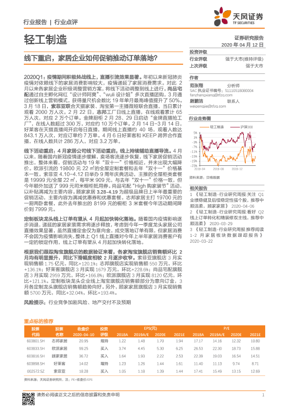 【天风证券】【20200412】轻工制造:线下重启,家居企业如何促销推动订单落地?-11页