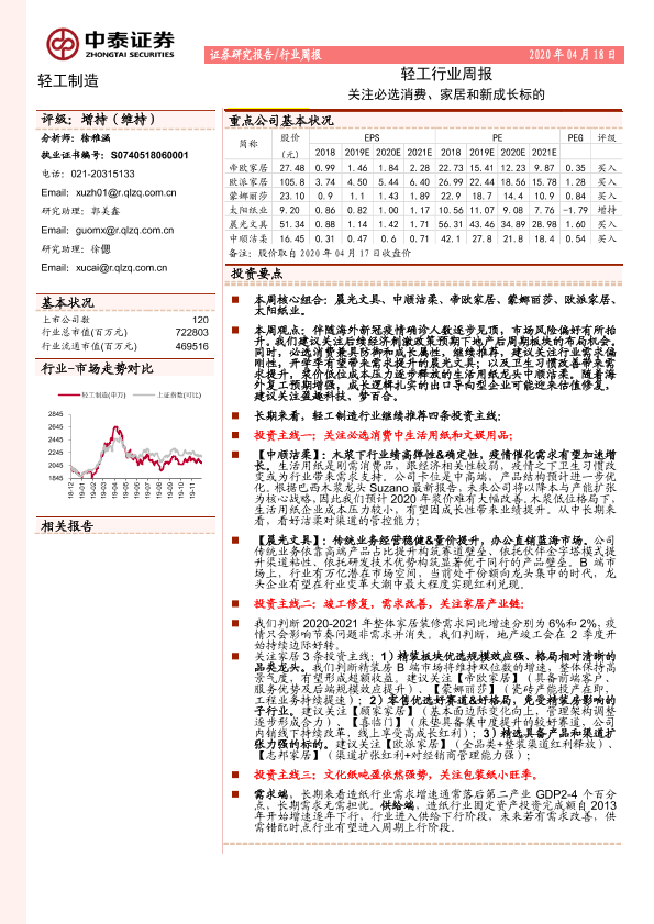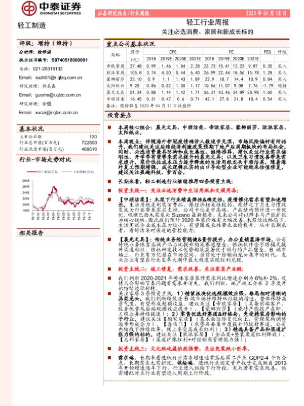 【中泰证券】【20200418】20200418-中泰证券-轻工行业周报:关注必选消费、家居和新成长标的-15页
