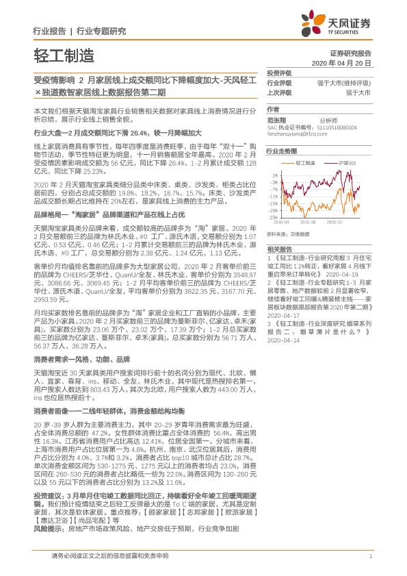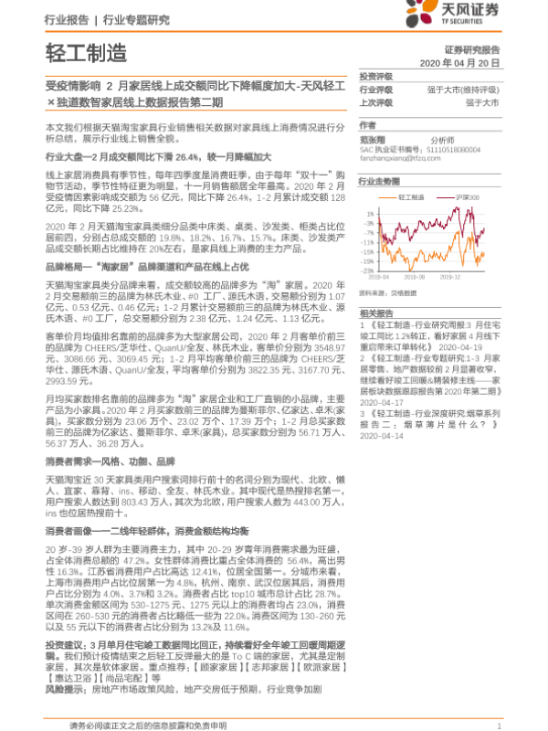 【天风证券】【20200420】轻工×独道数智家居线上数据报告第二期:受疫情影响2月家居线上成交额同比下降幅度加大-11页