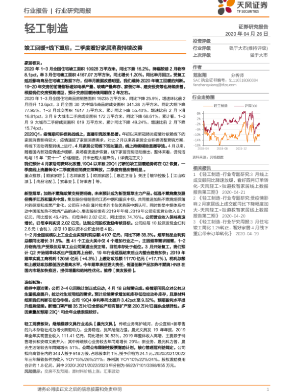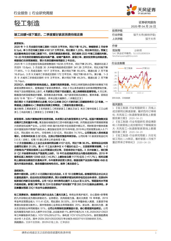 【天风证券】【20200426】20200426-天风证券-轻工制造行业研究周报:竣工回暖+线下重启,二季度看好家居消费持续改善-23页