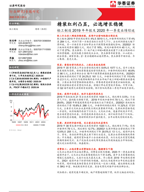 【华泰证券】【20200505】轻工制造2019年年报及2020年一季度业绩综述:精装红利凸显,必选增长稳健-25页