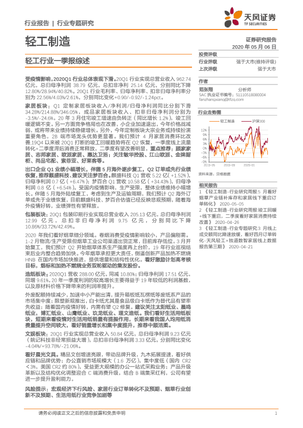 【天风证券】【20200506】轻工制造行业专题研究:轻工行业一季报综述-10页