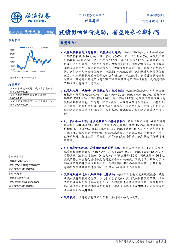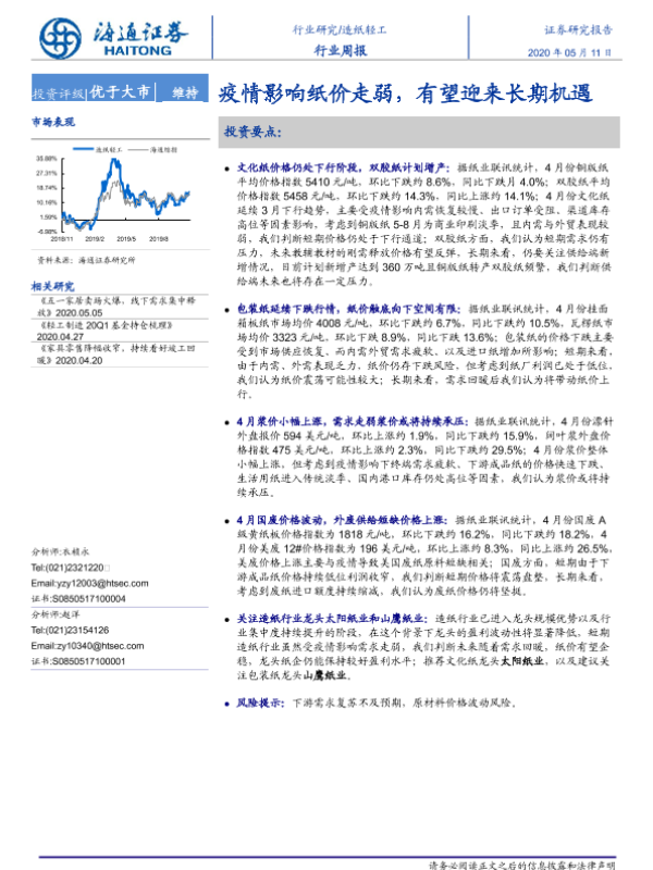 【海通证券】【20200511】20200511-海通证券-造纸轻工行业周报:疫情影响纸价走弱,有望迎来长期机遇-5页