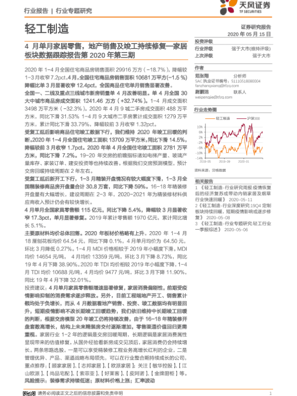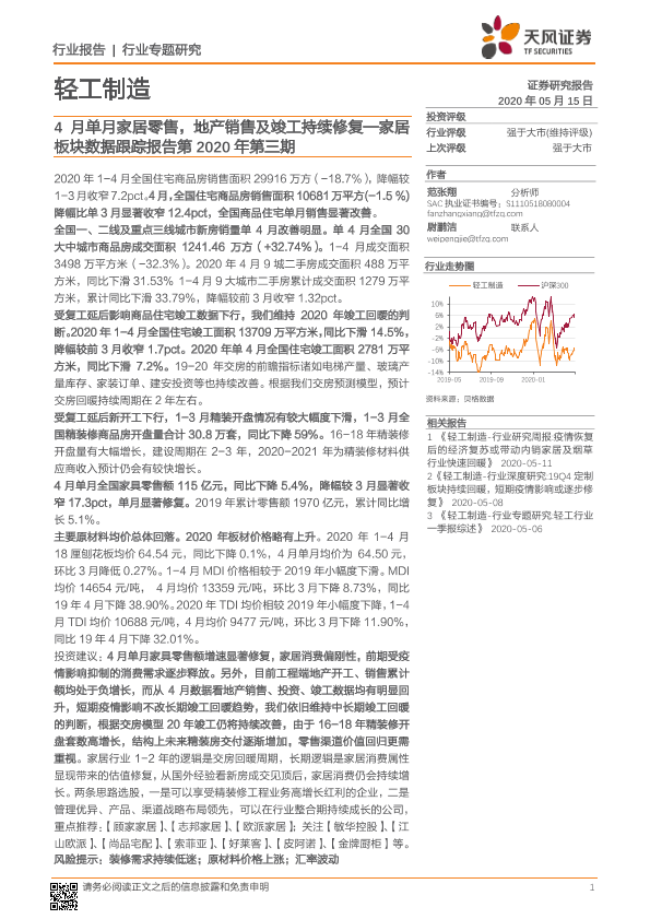 【天风证券】【20200515】20200515-天风证券-家居板块数据跟踪报告第2020年第三期:4月单月家居零售,地产销售及竣工持续修复-17页