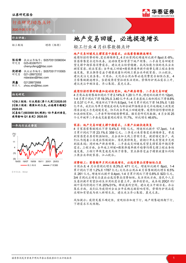 【华泰证券】【20200517】轻工行业4月社零数据点评:地产交易回暖,必选提速增长-5页