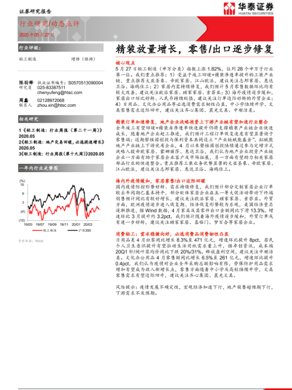 【华泰证券】【20200527】轻工制造:精装放量增长,零售 出口逐步修复-3页