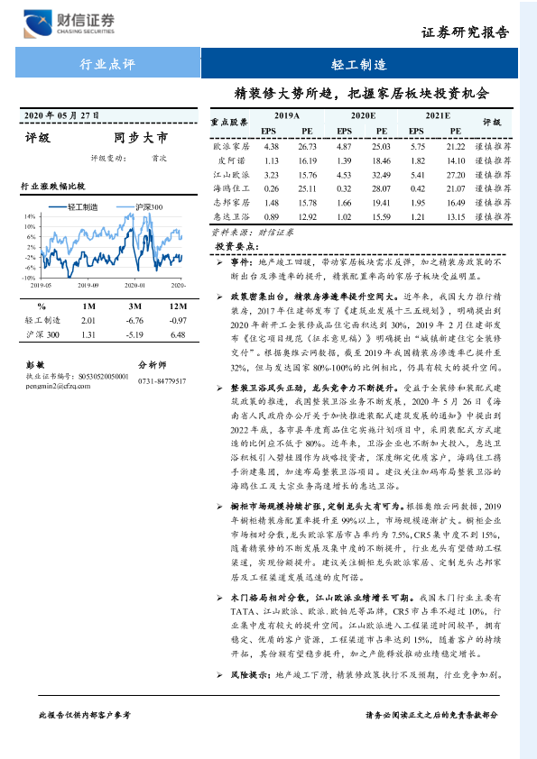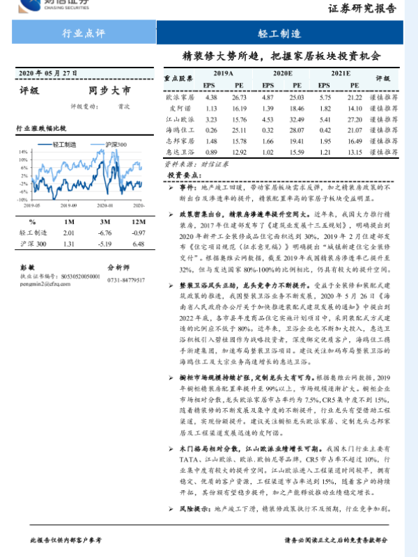 【财信证券】【20200527】轻工制造行业点评:精装修大势所趋,把握家居板块投资机会-2页