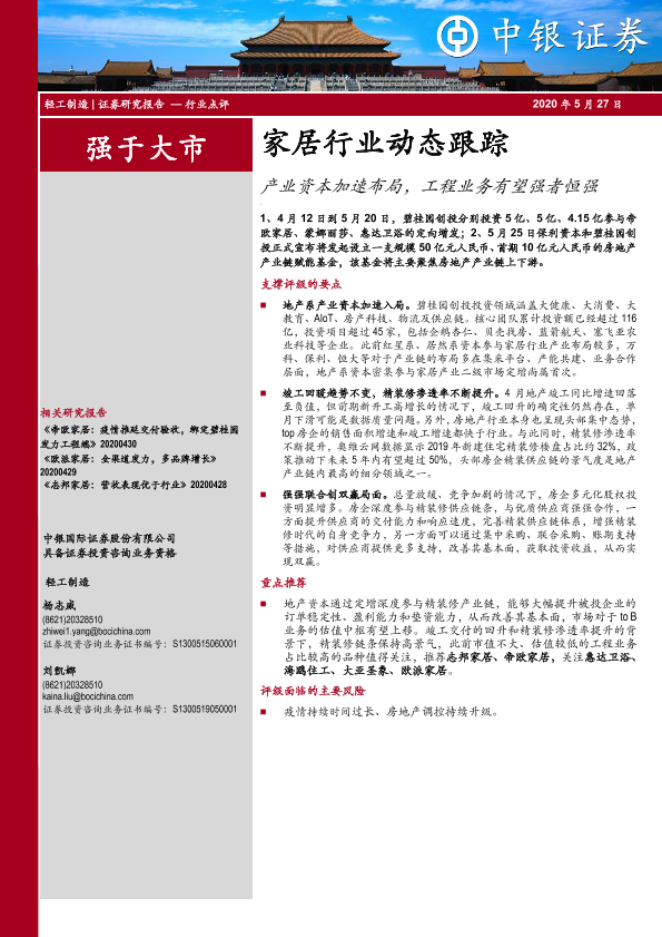 【中银证券】【20200527】20200527-中银证券-家居行业动态跟踪:产业资本加速布局,工程业务有望强者恒强-5页