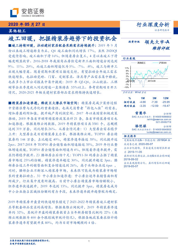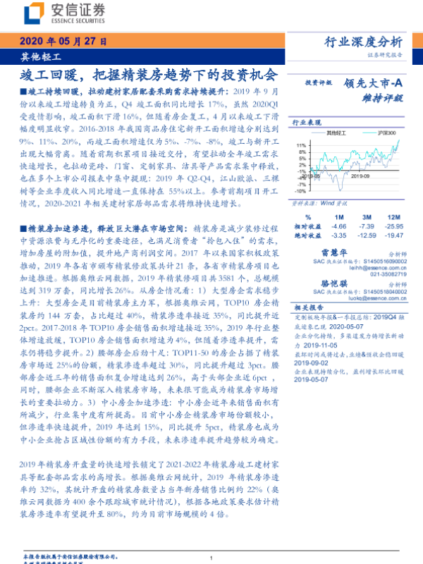 【安信证券】【20200527】竣工回暖,把握精装房趋势下的投资机会-23页