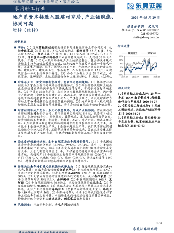【东吴证券】【20200529】家用轻工行业:地产系资本接连入股建材家居,产业链赋能、协同可期-3页
