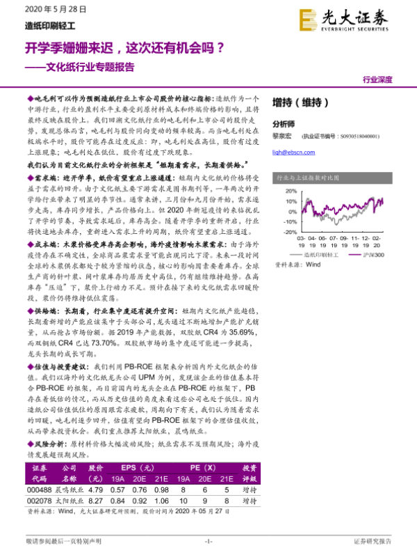 【光大证券】【20200528】20200528-光大证券-文化纸行业专题报告:开学季姗姗来迟,这次还有机会吗?-22页