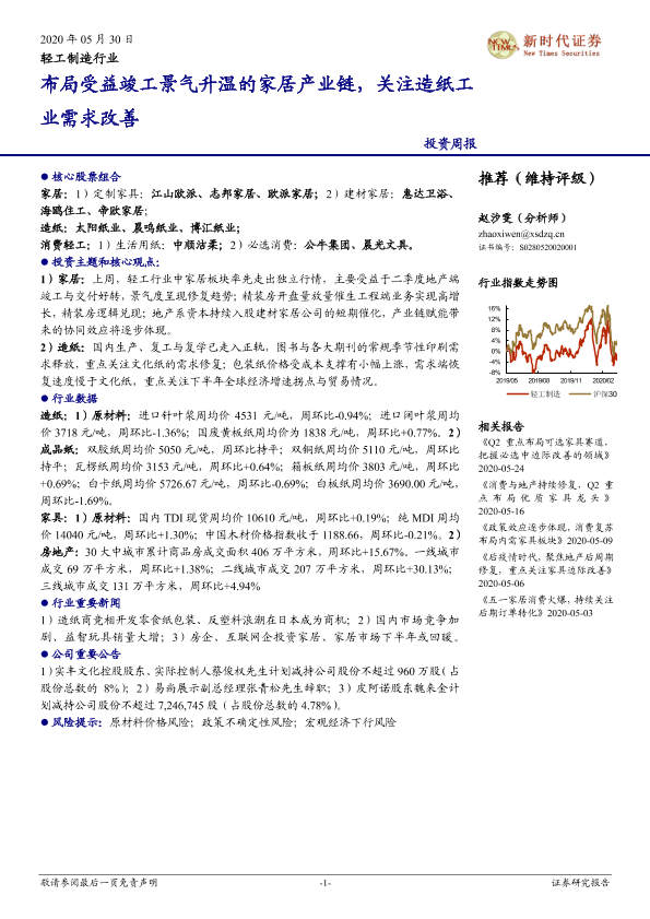 【新时代证券】【20200530】20200530-新时代证券-轻工制造行业:布局受益竣工景气升温的家居产业链,关注造纸工业需求改善-21页