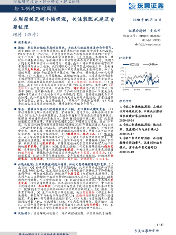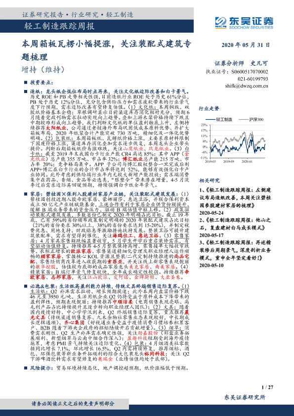 【东吴证券】【20200531】20200531-东吴证券-轻工制造跟踪周报:本周箱板瓦楞小幅提涨,关注装配式建筑专题梳理-27页
