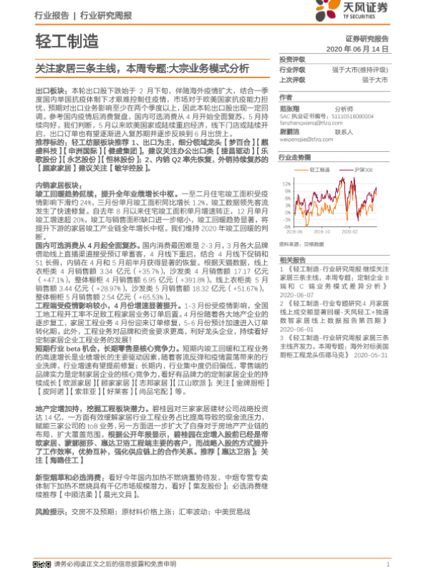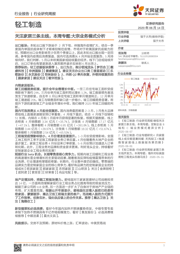 【天风证券】【20200614】轻工制造行业研究周报:关注家居三条主线,本周专题 大宗业务模式分析-20页