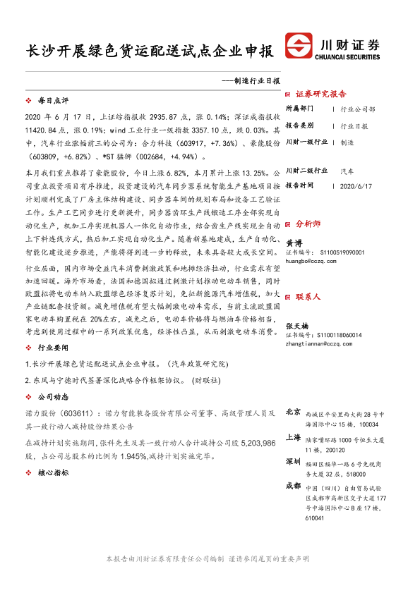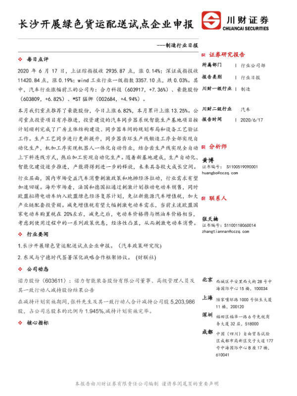 【川财证券】【20200617】制造行业日报:长沙开展绿色货运配送试点企业申报-4页