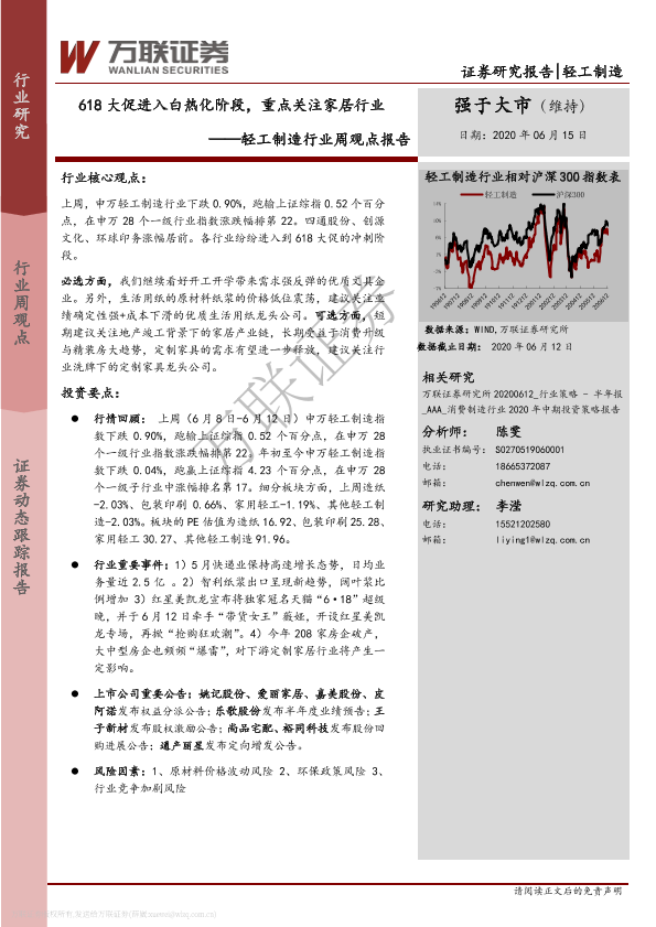 【万联证券】【20200615】轻工制造行业周观点报告:618大促进入白热化阶段,重点关注家居行业-9页