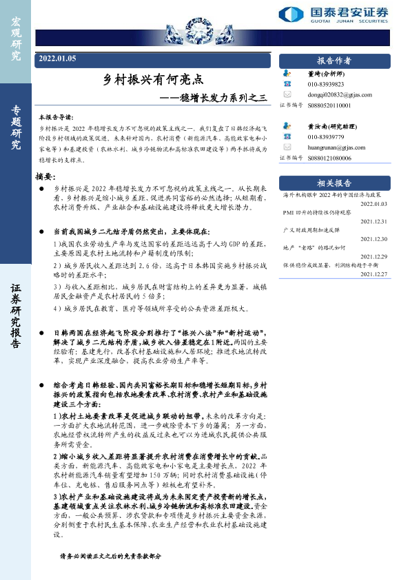 【国泰君安证券】【20220105】稳增长发力系列之三:乡村振兴有何亮点-19页