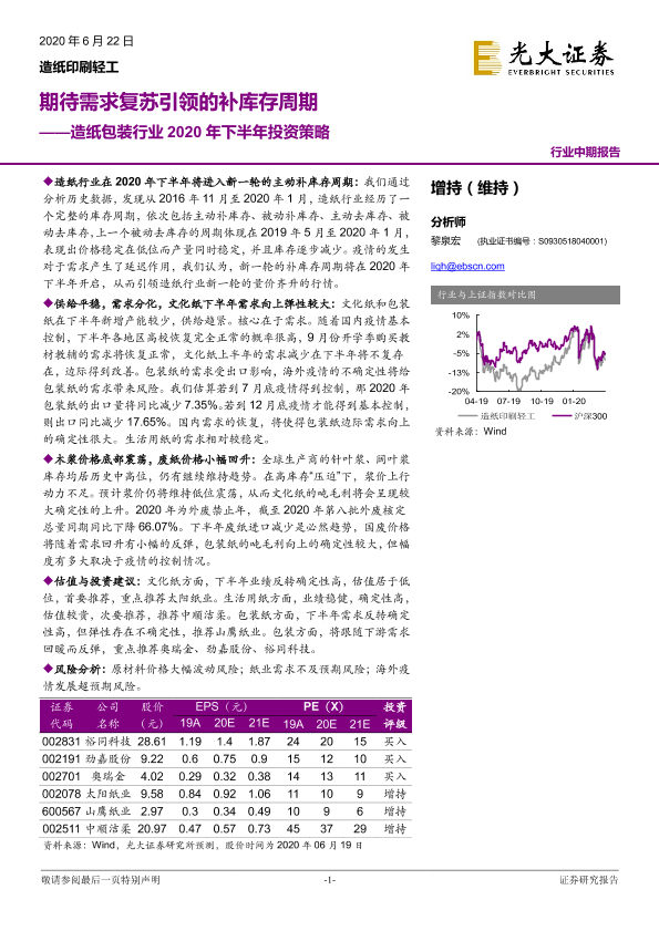 【光大证券】【20200622】造纸包装行业2020年下半年投资策略:期待需求复苏引领的补库存周期-20页